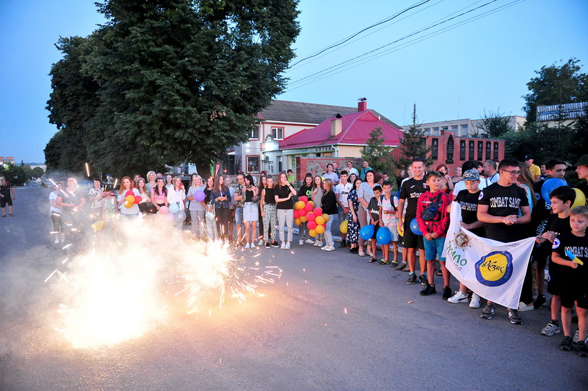 У рідному місті земляки для нього влаштували гучну зустріч. Місцеві жителі запалили феєрверки, принесли коровай.