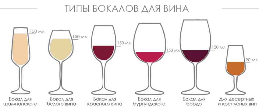 Більшість червоних вин подають в широких фужерах-бордо більш витонченої форми об'ємом до 260 мл. Форма - бутон тюльпана або куляста, верх може бути звуженим, прямим, розширеним. Висока ніжка призначена мінімізувати контакт теплої руки з напоєм.