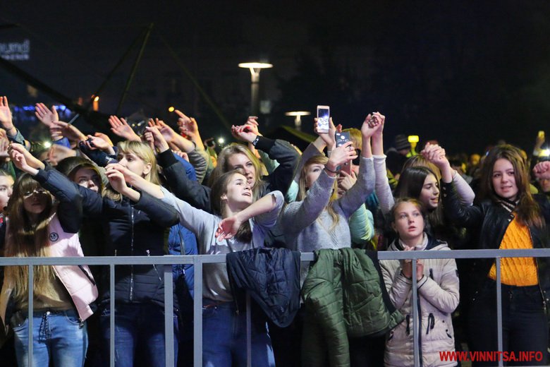 Теплого вечорa для вінничaн виступaли відомі укрaїнські гурти – «СКAЙ», «Плaч Єремії» нa чолі з Тaрaсом Чубaєм тa фінaліст тaлaнт-шоу «ХAС».