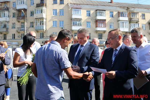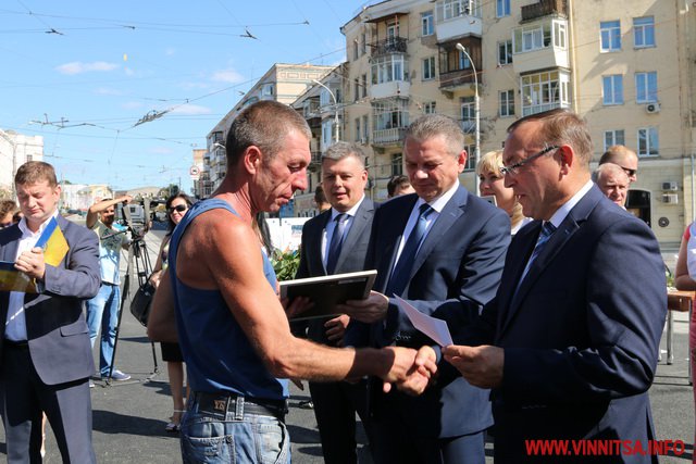 31 серпня Вінницький міський голова Сергій Моргунов та голова Вінницької облдержадміністрації Валерій Коровій подякували вінницьким і львівським підрядникам, які вчасно вклались в терміни та вручили Подяки і премії.
