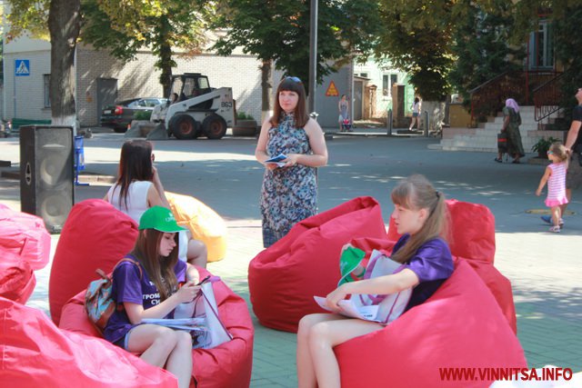 Для тих, хто прийшов з дітками, облаштували ігрову зону з м’якими кольоровими сидіннями. Наглядатимуть там за малечею члени ГО «Територія мам».