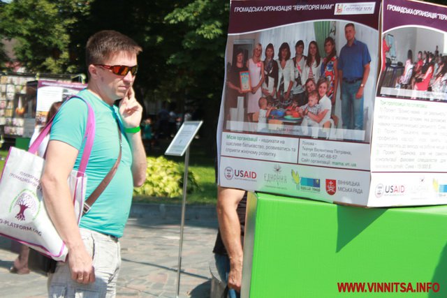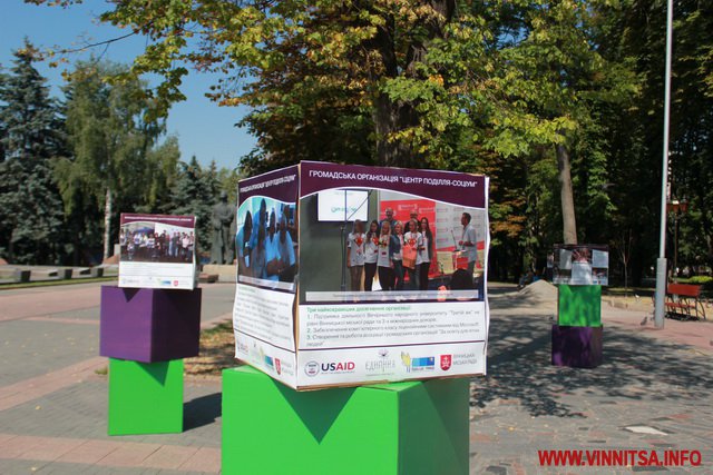 На Європейські площі розмістили куби із світлинами, на яких ображена діяльність громадських організацій. Кожен бажаючий міг ознайомитися з їх діяльністю і, можливо, знайти однодумця для реалізації якогось хорошої справи.