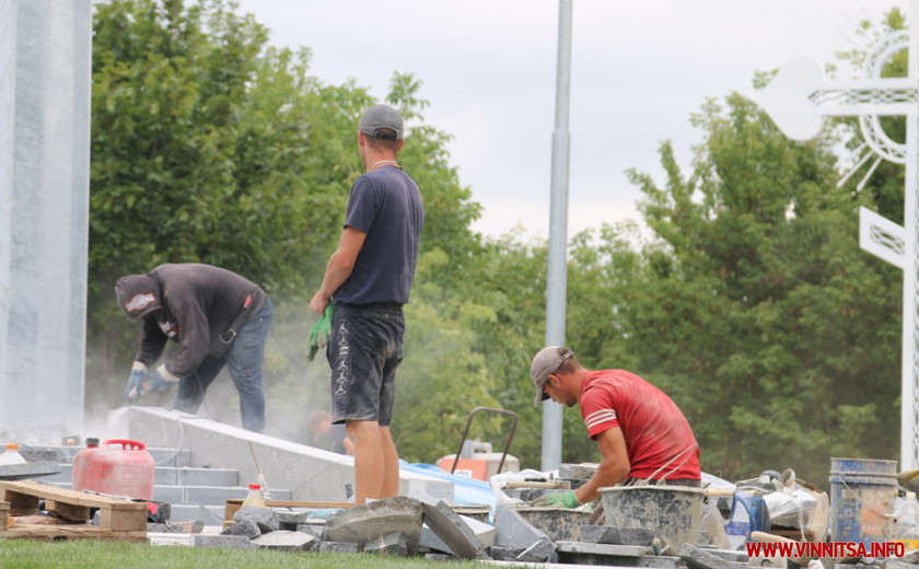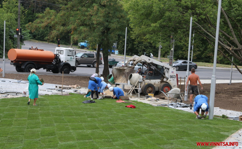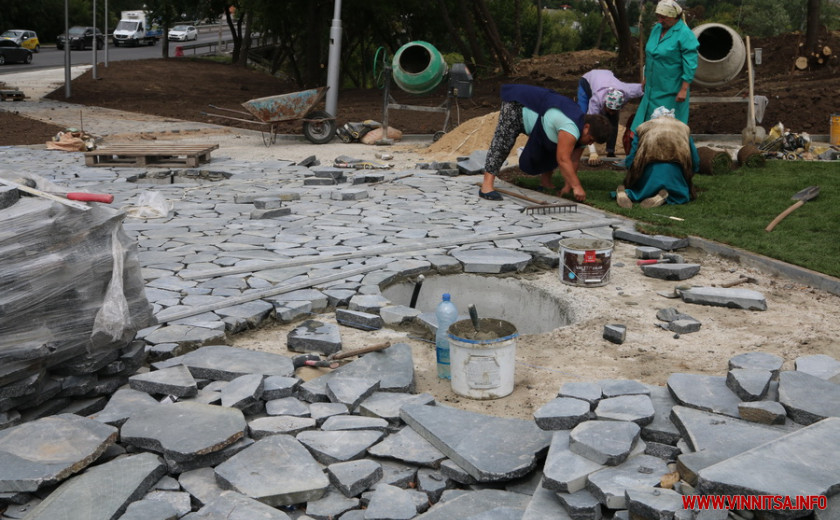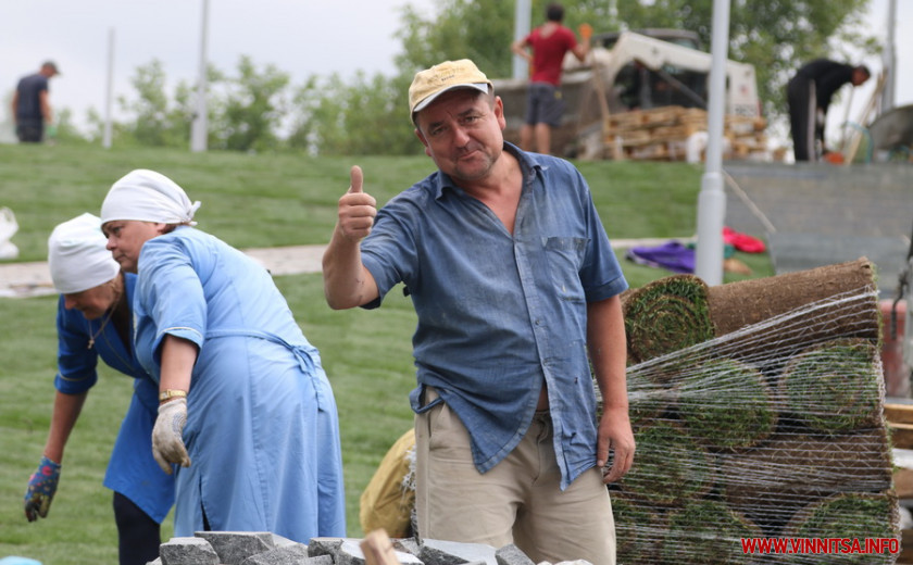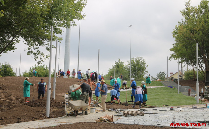 У Вінниці тривають останні приготування до дня Незалежності. Нині, на Замковій горі трудяться, як бджілки, до сотні людей. Будівельники кладуть гранітну плитку, працівники КП «Зеленбуд» втрамбовують землю та застеляють штучне покриття.