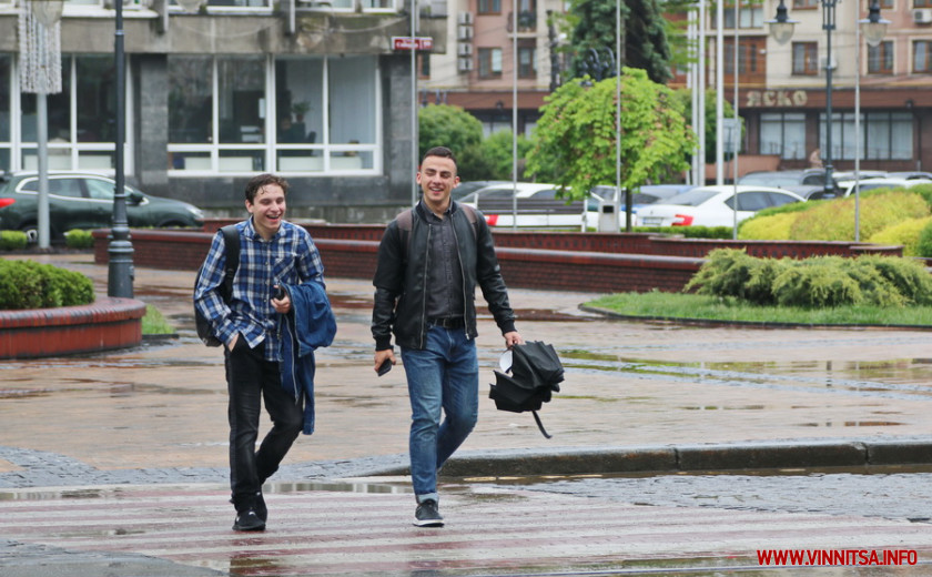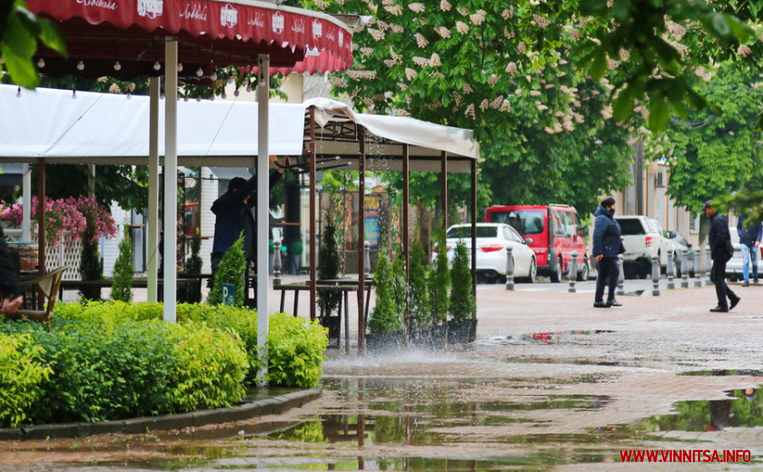 Ранок 27 травня у Вінниці розпочався з дощу. Але попри опади, на вулицях міста людно.