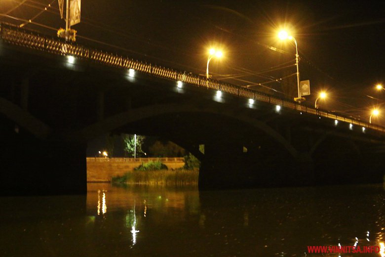 Незвичною та чаруючою виглядає Вінниця вночі у віддзеркаленні Південного Бугу. Ближче до півночі центр міста стає тихим і романтичним. О цій порі на річці зустрічаються поодинокі човни рибалок, а світло транспорту, що рухається мостами створює відчуття іншої реальності.