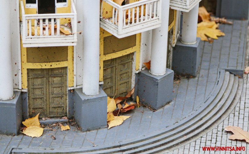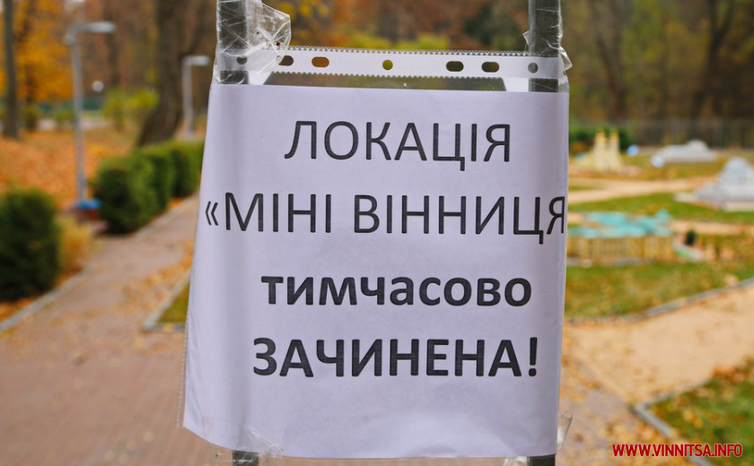 Сьогодні локація «Міні Вінниця» тимчасово зачинена. Тут доглядають за газоном, прибирають опале листя. Яке, до речі, додає затишку міні-копіям вінницьких будівель.