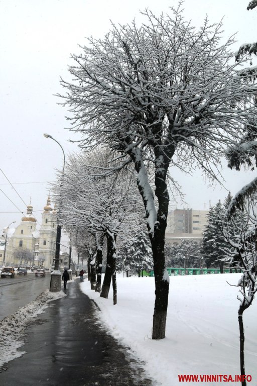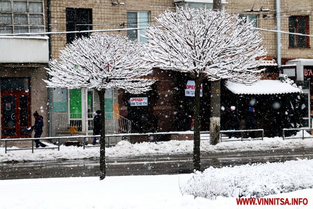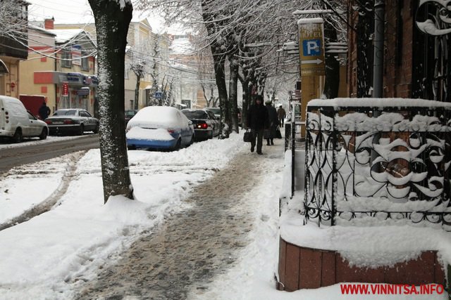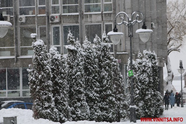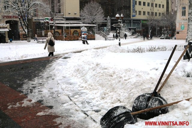 В ніч з 8 на 9 лютого Вінницю присипало снігом. Попри інтенсивні опади, дороги у місті очищені та посипані, у центрі прогорнуті і тротуари і пішохідні стежки на Європейській площі.