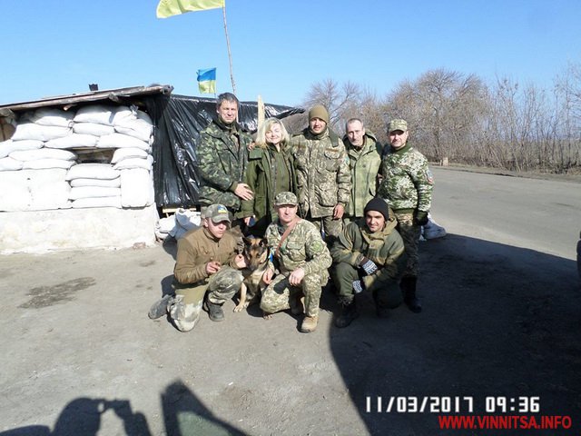 Так Баді стала моїм талісманом. Думаю, вона, попри складну долю, має щасливу вдачу,бо вижила на війні, хоча двічі підривалася на розтяжках. Зі мною вона була на бойових виїздах у Щасті. Чергували на заправці. Напередодні загинули наші побратими. Згоріли, влучив снаряд... Тоді серед загиблих був наш друг, вінничанин, майданівець Олександр Захарчук. Вічна пам’ять Героям! Баді усе розуміла, тому охороняла мене ще сильніше, ніж то було раніше. Більше сотні айдарівців полягло в боях за звільнення України».