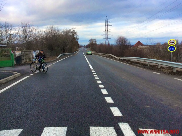 Вздовж автомобільної дороги «Південний обхід міста Вінниці», яку в народі називають малою окружною, облаштували пішохідну зону з велодоріжкою та завершують монтаж бар’єрного огородження, що відділяє тротуар від проїжджої частини. Загальна довжина велодоріжки – більше 3-х кілометрів.