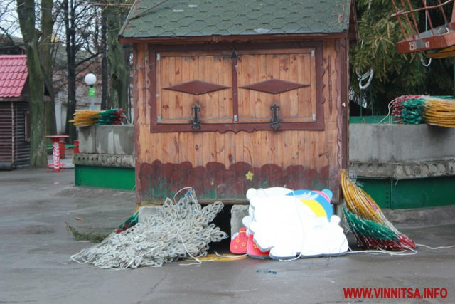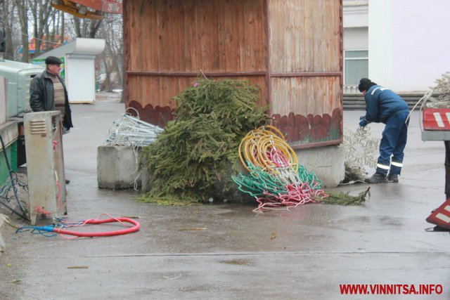 21 січня почали знімати гірлянди та іграшки з центральної ялинки міста. А вже наступного дня ялинку повністю розберуть в центральному парку ім. Горького.