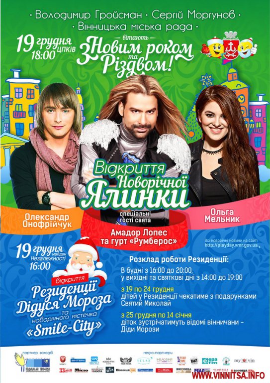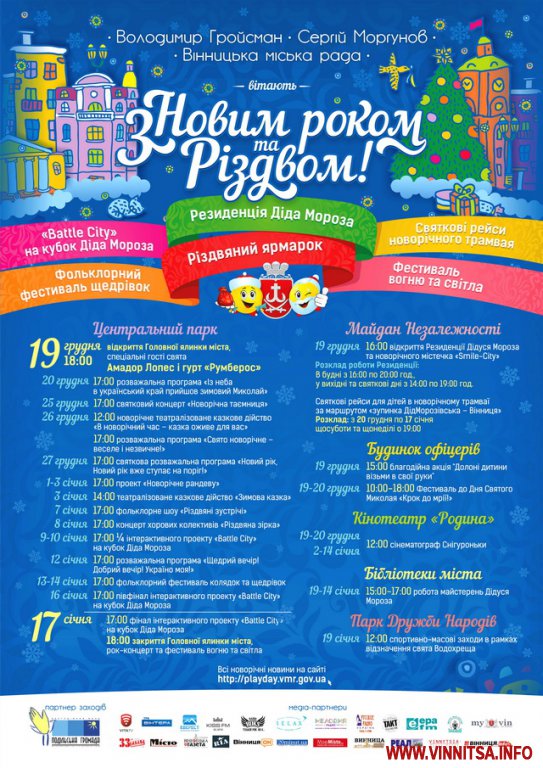 Стала відома програма святкування Новорічних свят у Вінниці. З 19 грудня по 19 січня вінничан очікує чимало зіркових гостей, конкурсів і веселощів.