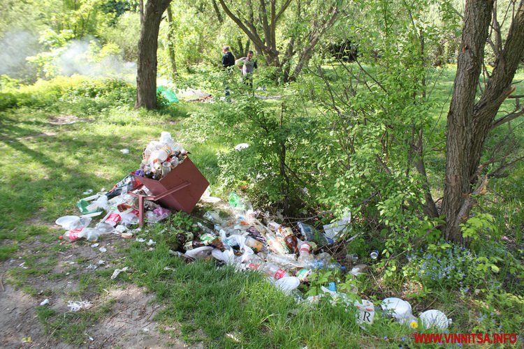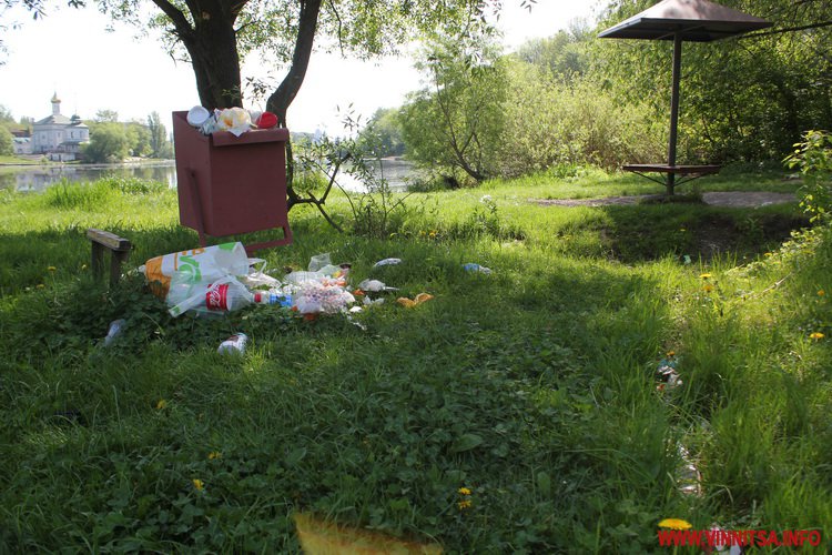 Вінничани мали чотири дні вихідних, які припали на кінець квітня та початок травня. Чимала кількість людей вирушила на відпочинок до берегів Південного Бугу. Деякі забули забрати за собою сміття. Якщо на міських діючих пляжах чисто та прибрано, то у зеленій зоні залишаються гори відходів: пластиковий посуд, пляшки з-під води та алкогольних напоїв.