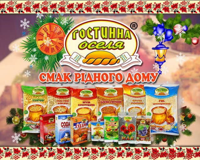 Українська оселя споконвіку славилася своєю щедрістю і гостинністю: на столі духмяниться золотава паляниця, а в печі у горщиках весело клекочуть борщ та каша… Найкращі риси українського народу надихнули виробників на створення продукції під торговою маркою «Гостинна оселя».