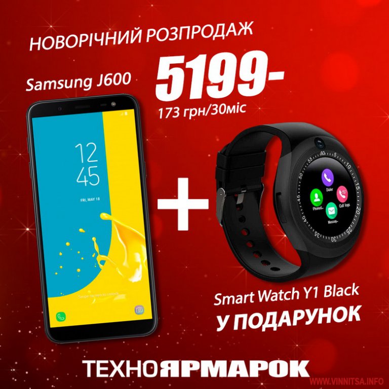 Смартфон Samsung J600 за 5199грн або у розстрочку 173грн на 30 місяців. Смарт-годинник Smart Watch Y1 Black в подарунок.