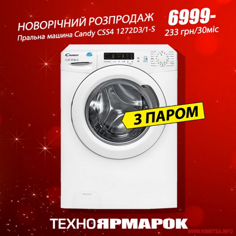 Пральна машина з паром та смарт-керуванням Candy CSS4 1272D3/1-S – лише за 6999грн або в розстрочку 233грн на 30 місяців!