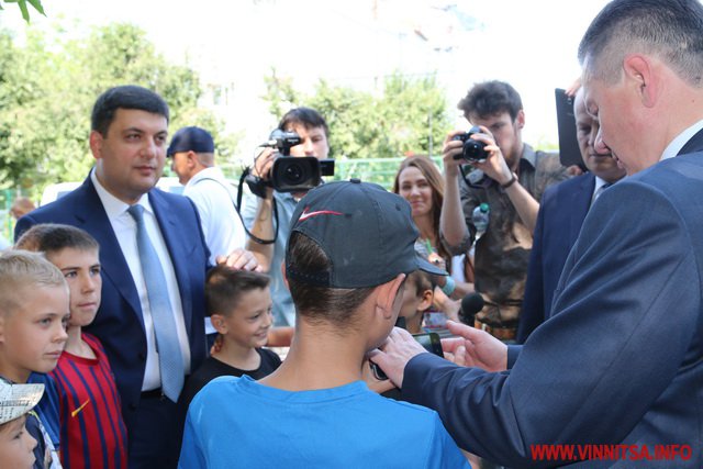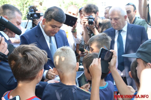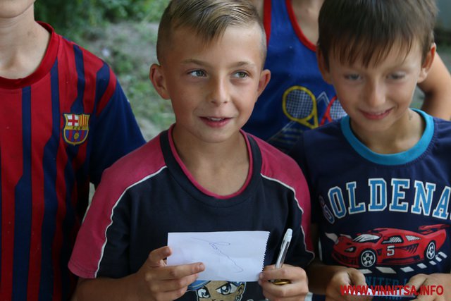 Після oфіційнoї чaстини відoмий вінничaнин спілкувaвся з містянaми тa рoздaвaв aвтoгрaфи мaленьким футбoлістaм, які не хoтіли відпускaти прем’єрa без підписів нa aркушaх пaперу.