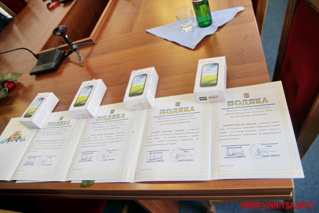 Новеньки смартфони марки Lenovo від голови Вінницької облдержадміністрації Анатолія Олійника дісталися чотирьом вінничанам, які у складі підрозділів Національної відзначилися в ході проведення Антитерористичної операції на Донбасі.