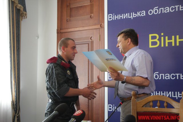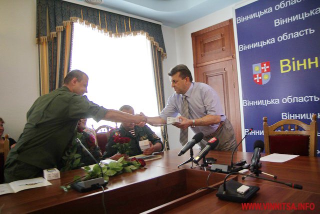- Хочу сказати вам батьківське спасибі за вашу мужність. Зі свого боку, ми будемо робити все, аби наші бійці на передовій були забезпечені належним чином – і пальним, і харчами, і одягом, і засобами захисту. Завдяки благодійникам, ми не лише забезпечили всіх бійців вінницьких батальйонів бронежилетами, а й створили резерв – сотню таких засобів захисту. Україна двадцять два роки втрачала своє військо, тож тепер за кілька місяців всі свідомі громадяни докладають максимум зусиль, аби забезпечити всім необхідним наших захисників, які на Сході відстоюють свободу і незалежність нашої держави.