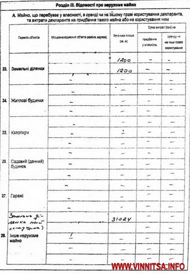 У В. Коровія є дві ділянки площею 1200 та 1700 м. кв. Ще дві ділянки (1000 і 2600 м.кв.); будинок (198 м. кв.) та квартиру (86,5 м. кв.) задекларувала дружина посадовця.