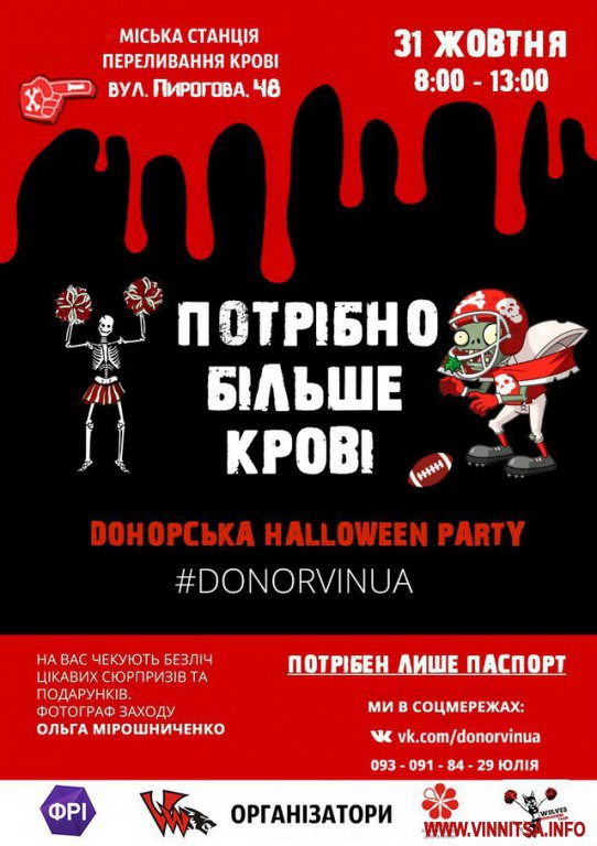 Оргaнізaтори, обіцяють окрім донaції,буде костюмовaне хорор-шоу, зомбі-черлідери, фотозонa тa безліч сюрпризів.