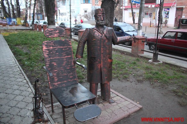 На перехресті вулиць Архітектора Артинова і вулиці Грушевського розміщений пам’ятник стоматологу. Це спільне виробництво колективу стоматологічної клініки - лікарі розробили проект і покликали слюсаря, який зробив цікаву скульптуру.