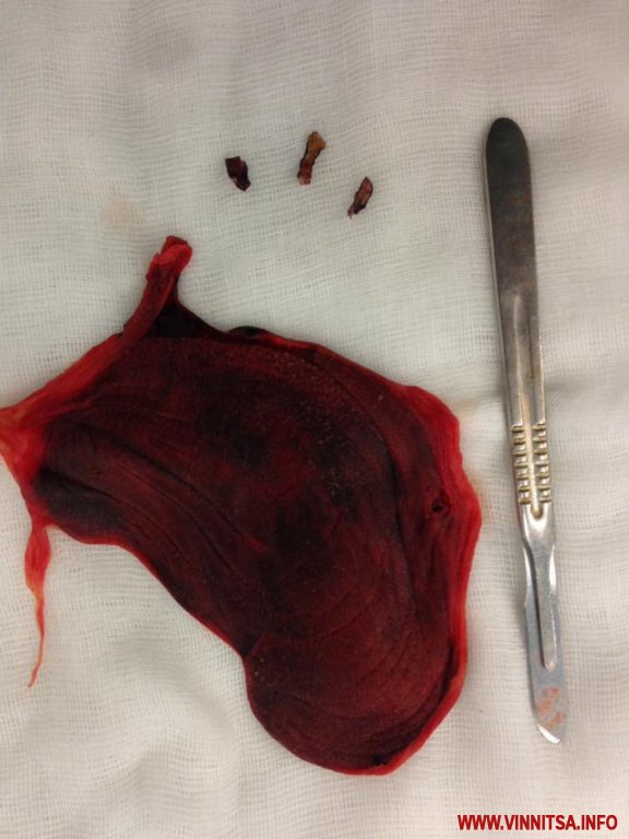 «На вулиці спека навіть вночі, і в лікарні Мечникова кипить робота: на фото згусток крові і осколки витягнуті напередодні з перикарда пораненого бійця АТО за участю кардіохірургів», - написав хірург лікарні Мечникова у «Фейсбук».