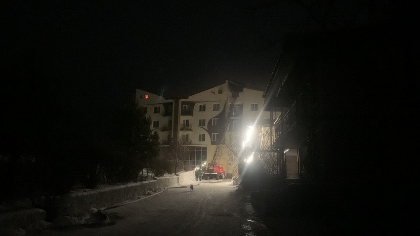 За інформацією рятувальників, пожежа сталась в комплексі відпочинку «Батерфляй» - на покрівлі площею 900 м. кв. шестиповерхової будівлі готелю. Пожежу ліквідовано о 05:26 годині.