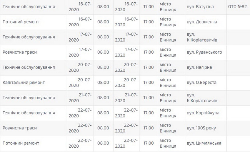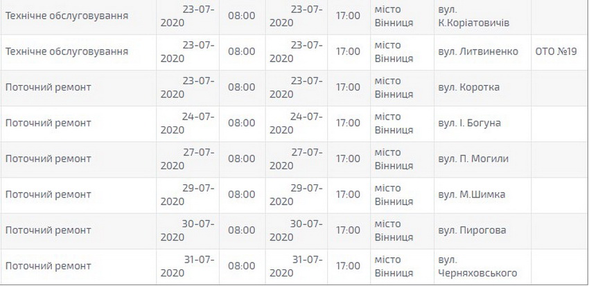 «У зв’язку із непередбачуваними обставинами (несприятливі погодні умови, поломка транспорту та механізмів, хвороба персоналу) виконання ремонтних робіт може переноситись на пізніші терміни», – зазначають в повідомленні «Вінницяобленерго».