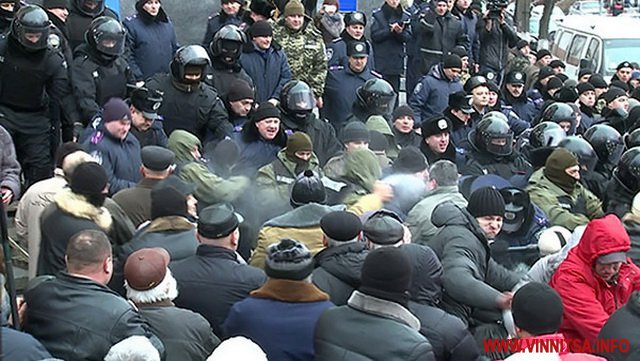 Вінницька міліція відреагували на ці виклики "по шаблону", перекривши вхід у будівлю потрійним кордоном правоохоронців, залучивши також до цієї справи бійців спецбатальйону "Вінниця", які кілька днів перед цим повернулися із зони АТО.