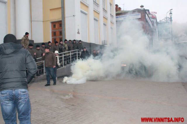 Згодом виявилось, що значна частина тих, хто штурмував будівлю, - не місцеві. Вони навіть не заперечували журналістам, що приїхали з сусіднього обласного центру Хмельницький. Свої дії варяги чітко координували із лідером вінницької "Свободи" Олексієм Фурманом.
