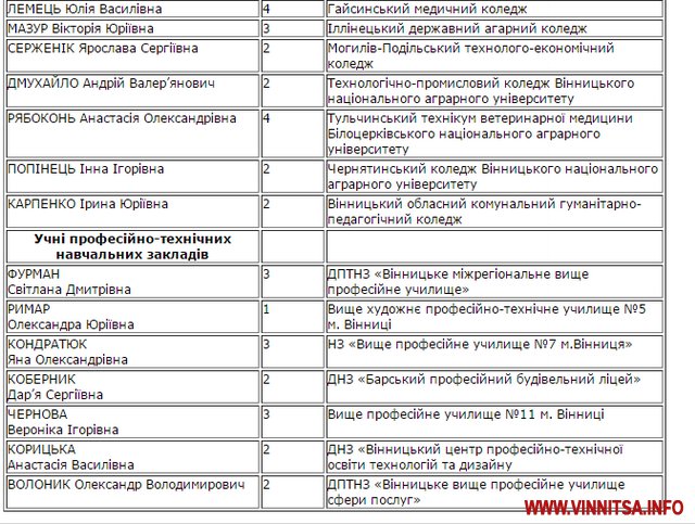 Отож, за результатами роботи комісії, кандидатами на призначення стипендій облдержадміністрації та обласної Ради у І півріччі 2016 року визначено наступних осіб: