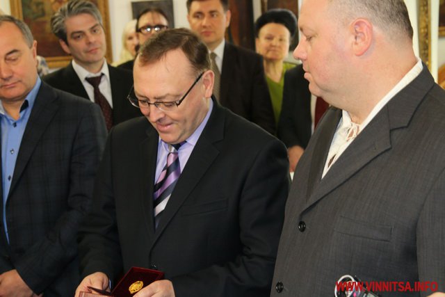Голова облдержадміністрації Валерій Коровій виконав почесну місію і вручив Володимиру Козюку відповідно до Указу Президента України державну нагороду «Народний художник України».