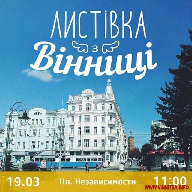Кращі малюнки з видами Вінниці перетворяться на привабливі для вінничан та туристів листівки, які покажуть «обличчя» міста очима художника. Кошти, що будуть виручені в процесі реалізації листівок, будуть спрямовані на створення арт-об`єктів у дитячих лікарнях міста. Всі листівки будуть надруковані на переробленому папері, отже купуючи таку листівку ви не тільки зможете допомогти дітям, а й зробите свідомий екологічний вибір.