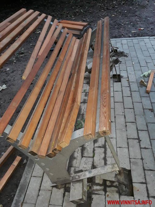 У ніч на 16 вересня на алеї парку Дружби народів у Вінниці невідомі розтрощили лавочку та смітник. На цій території нещодавно пройшла масштабна реконструкція.