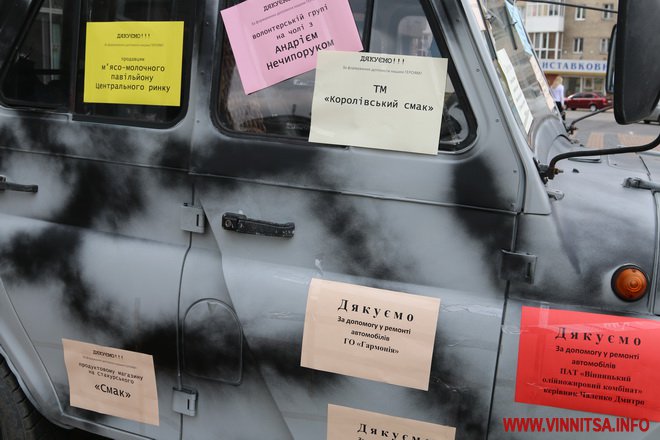 11 вересня Вінниця відправила на Схід чергову, але таку необхідну, допомогу бійцям. Цього разу на передову вирушили сім автівок, чотири з яких залишаться там. Завдяки небайдужим громадянам, хлопці в зоні АТО отримають в підмогу «Ниву», УАЗ, Hyundai Galloper та Mitsubishi Pajero.