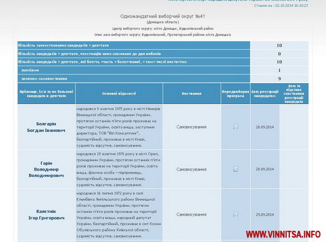 29 вересня ЦВК зареєструвала кандидатом в народні депутати Ігоря Калєтніка, як самовисуванця на ОВО № 41 з центром в місті Донецьк (Будьонівський, Пролетарський райони міста Донецька).