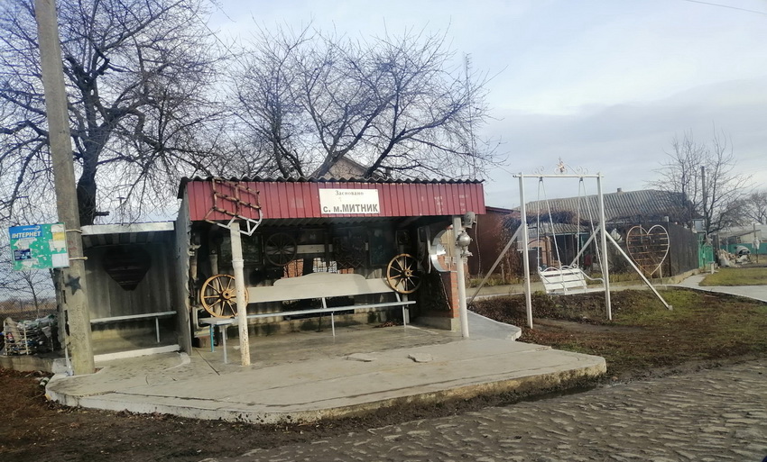 У селі Малий Митник, що у Хмільницькому районі Вінниччини, місцевий житель облаштував унікальну автобусну зупинку. У середині критого приміщення встановив лаву у старовинному стилі. Стіни прикрасили раритетними речами селянського вжитку минулого століття: самовар, праски, картини й навіть ікони на вишитих рушниках. Для дітей поряд ще й вмонтували ковану гойдалку. А для молоді - спец місця для поцілунків.