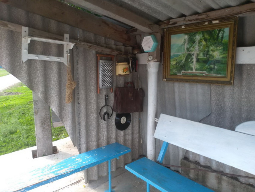«Батько живе у Хмільнику, а от зупинка, яку він ініціював облаштувати під музей, знаходиться поряд з його батьківською хатою. Якось, він захотів щось зробити приємне для місцевих жителів. Тому і розпочав здійснювати задумане. Ми його підтримали та допомагали у реалізації. Коли вже з’явилась зупинка, люди почали туди зносити якісь речі раритетні. Облаштовувати там затишок, робити оригінальний інтер’єр. Кожного року на території поряд батько хоче додати щось нове. Тому і з’явилась гойдалка. А на весні буде ще один пам’ятник. Ми вже залили фундамент. Але, хто стане прототипом на постаменті, батько тримає наразі для селян у секреті», - розповідає Вінниця.info син митця Ярослав.