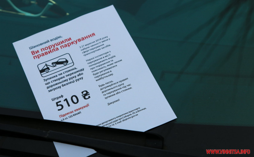 «Сьогодні наші інспектори вперше виходять на маршрут, починають інформаційно-роз’яснювальну роботу з водіями. Проводять ці роботи з приводу правил паркування в нашому місті. Спочатку на інспектування беруть центр Вінниці, інспектори будуть просити водіїв, щоб не порушували правил паркування. Штрафувати водіїв плануємо за досвідом інших міст - через 1,5-2 місяці. Цей штраф буде від 255 гривень до 510 гривень.