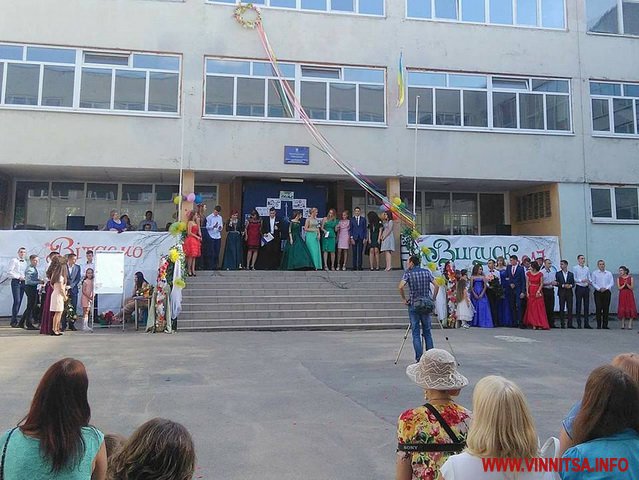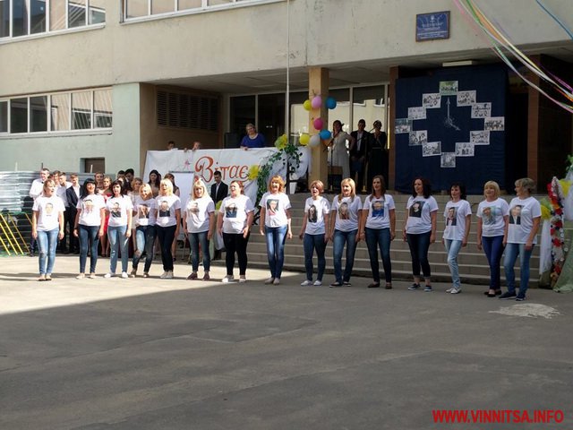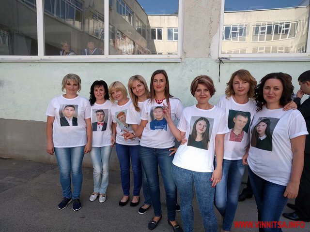 У Вінниці в школі № 20 мами учнів підготували незвичний подарунок для випускників. Вони одягнулися у футболки із фотографіями дітей та влаштували танцювальний флешмоб.