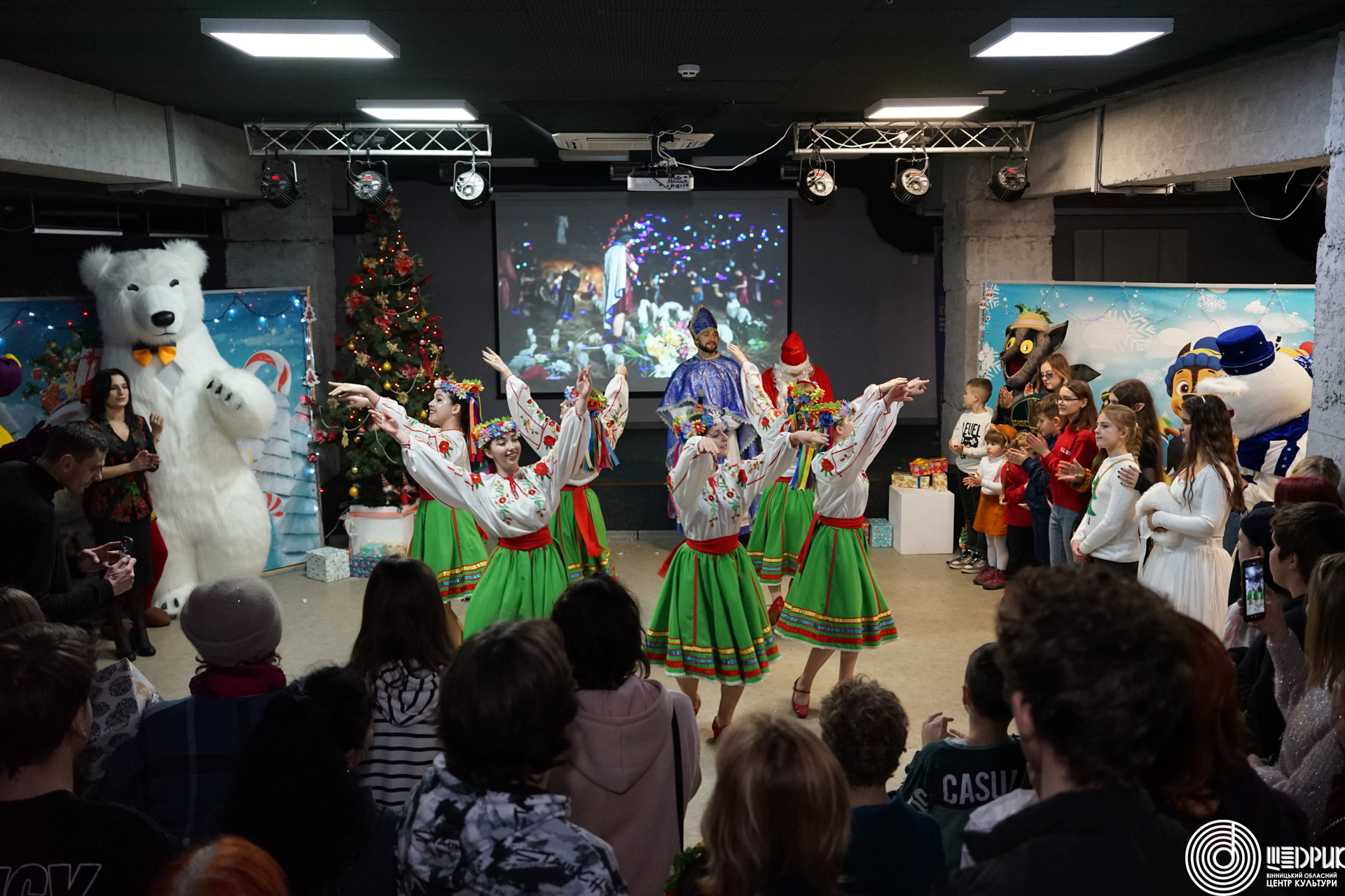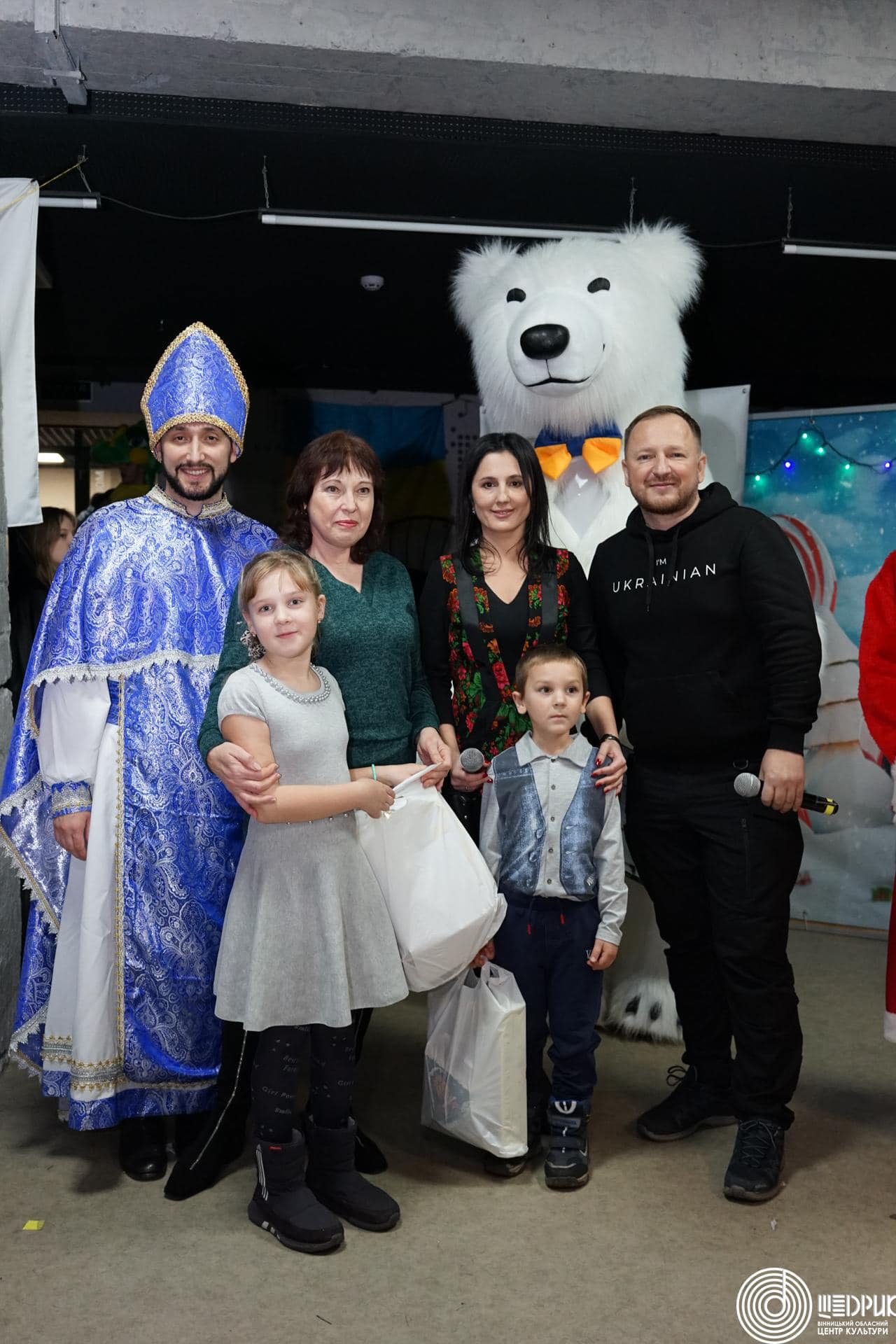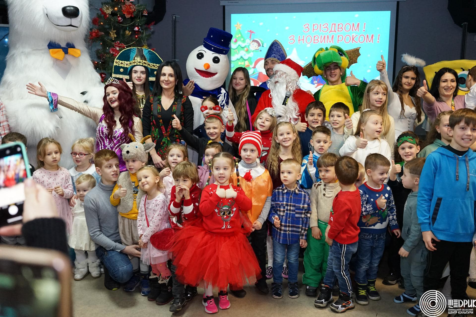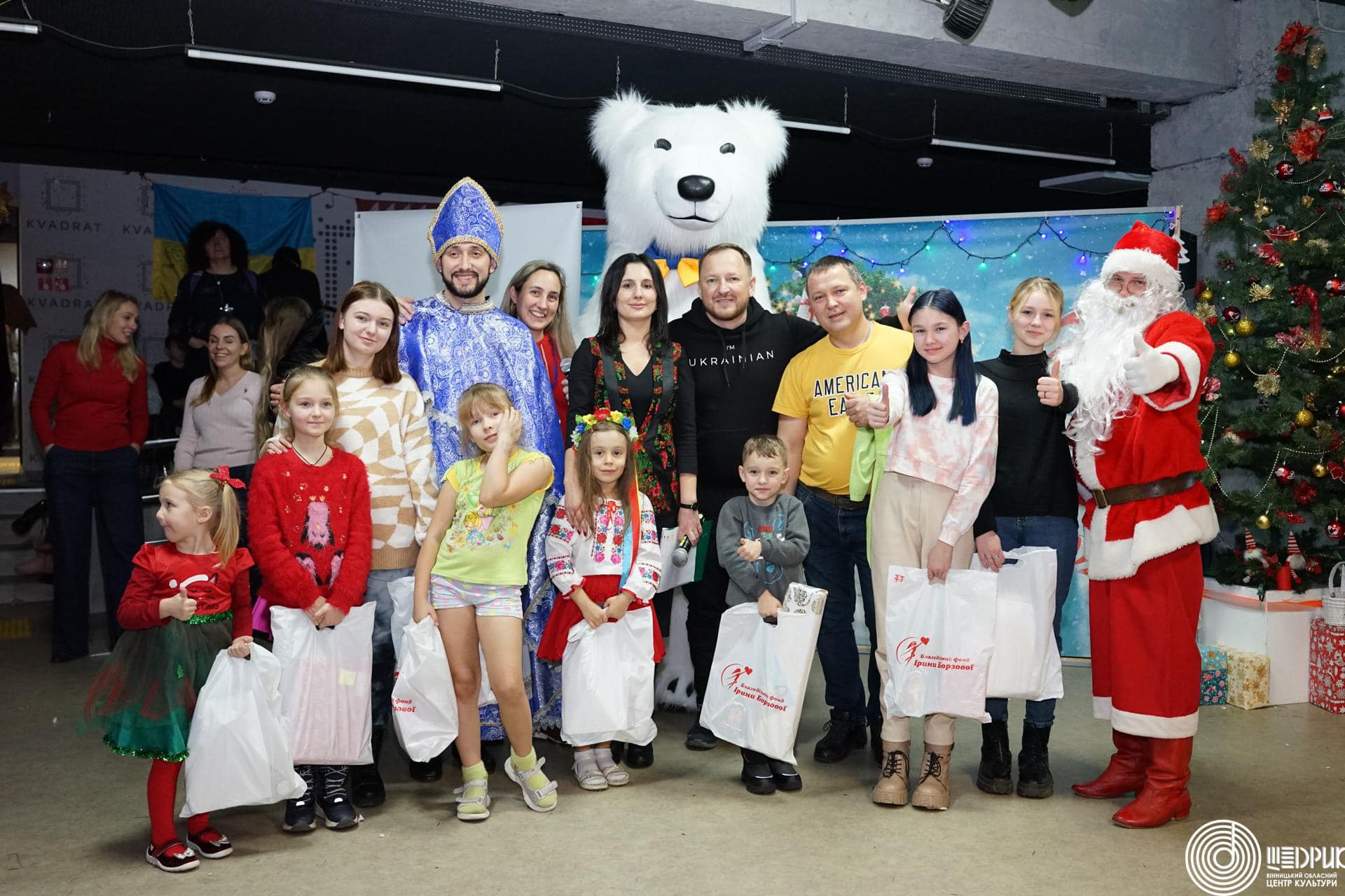 Для діток з Харкова організували свято з ялинкою, Святим Миколаєм, Сантою, Різдвяними колядками з гуртом «Мокоша», грою у сніжки та подарунками для кожної дитини.