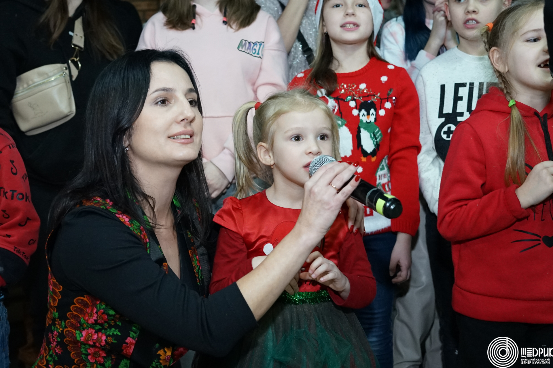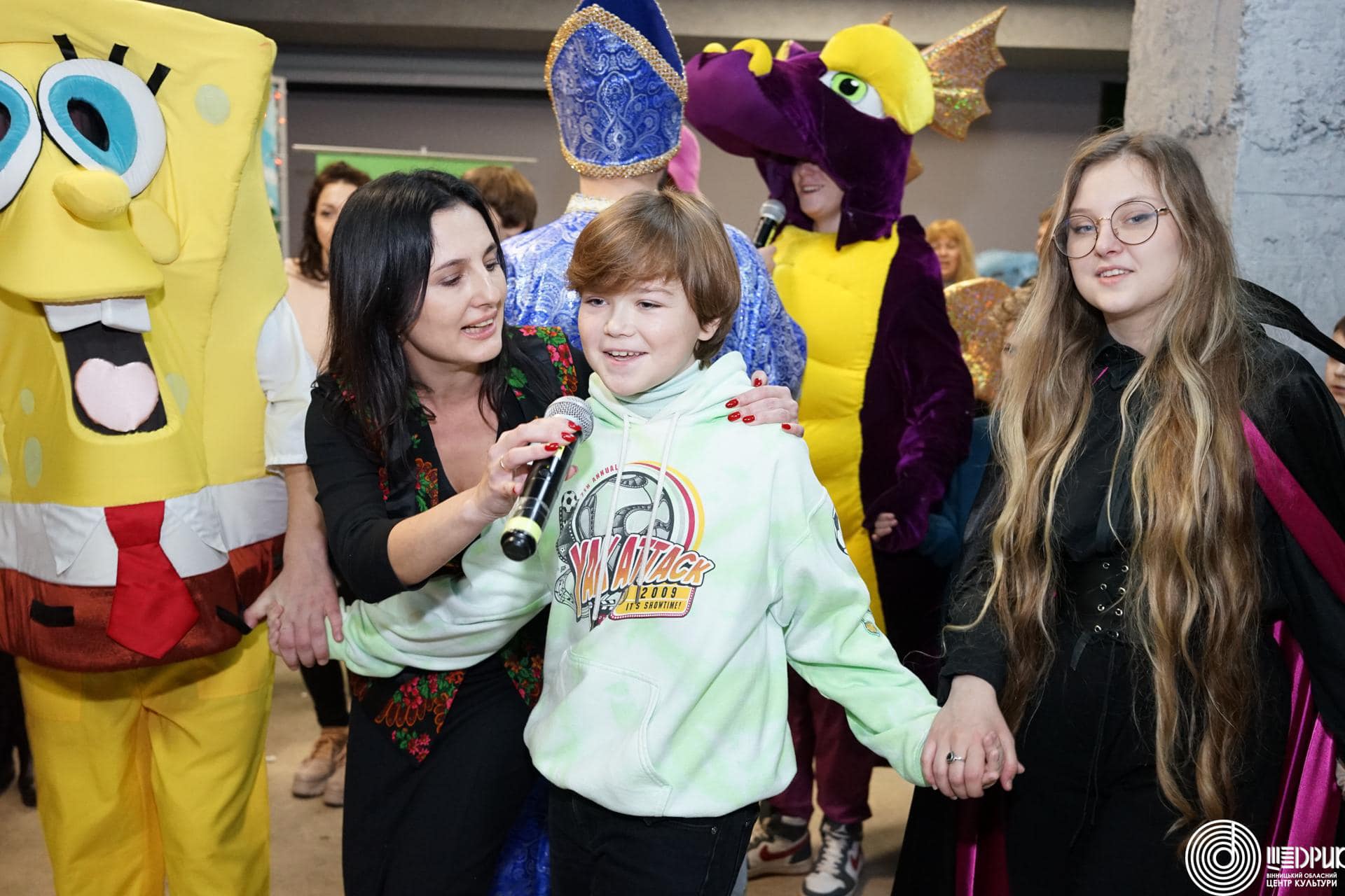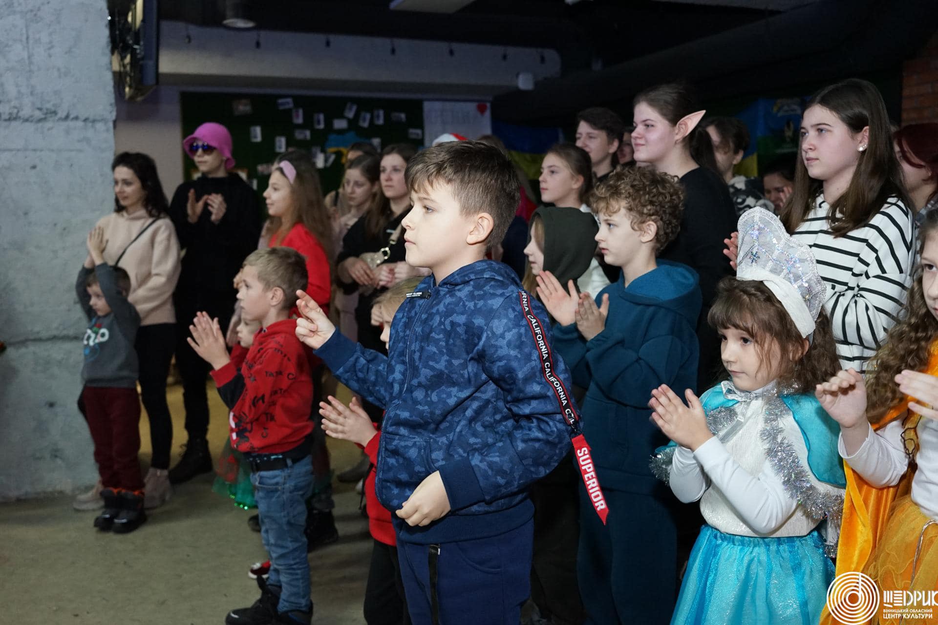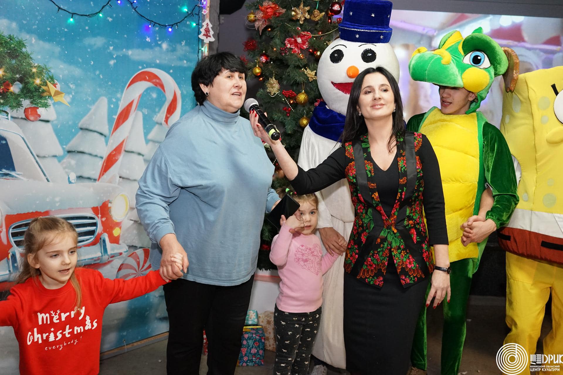 Для діток з Харкова організували свято з ялинкою, Святим Миколаєм, Сантою, Різдвяними колядками з гуртом «Мокоша», грою у сніжки та подарунками для кожної дитини.