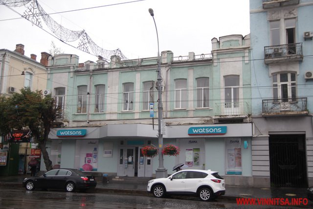 Наступна зелена - не є архітектурною пам'яткою, але розташована у самісінькому центрі Вінниці і, як у "12 стільцях" старі валянки двірника Тихона, "воздуха тоже не озонирует". Це колишня власність об’єднання продтоварів, де працював вантажником вже згадуваний Віктор Малиновський і яке він згодом відсудив. Витрачатись на ремонт обшарпаного будинку, де його офіс, Малиновський не поспішає: "Люстра моя, куда хочу туда и вешаю".
