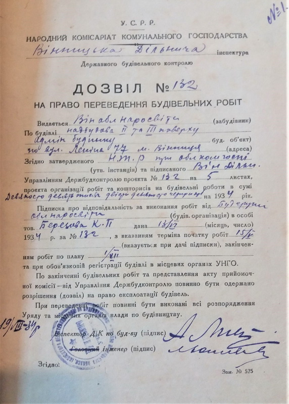 За радянської влади, у 1930-х, у стінах цієї споруди розташовувався Вінницький обласний відділ народної освіти. У 1934 році добудовують другий та третій поверх - будівля стає більш подібною до свого сьогодення.