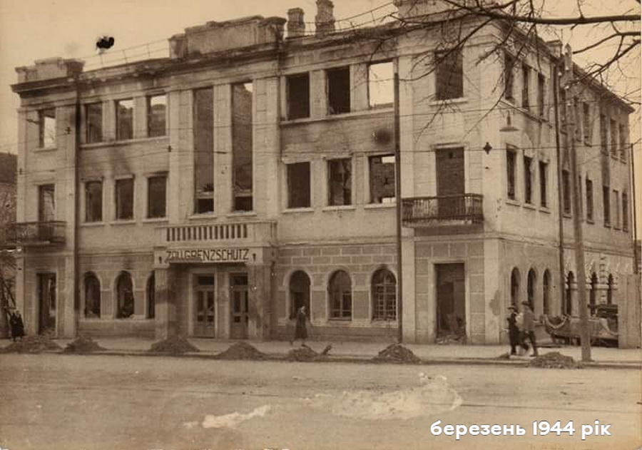 Проте фото, зроблені після вигнання нацистів, зберегли його обриси – і вигляд був дещо інший, ніж той, до якого ми звикли. Саме на основі історичних світлин було прийнято рішення максимально відновити довоєнну композицію будівлі, повернути фасадні акценти включно з вхідною групою.