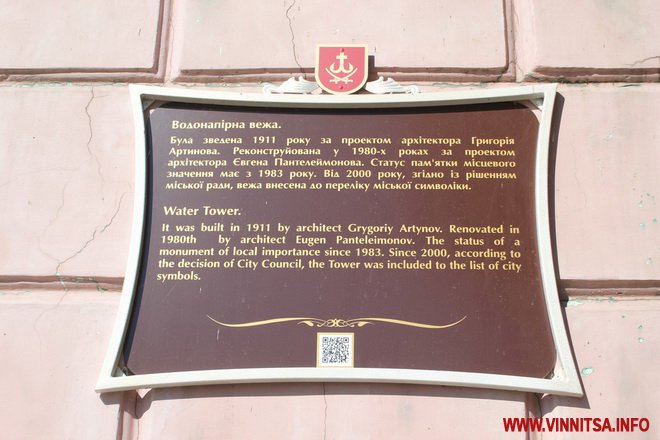 Водонапірна споруда розташована на Європейській площі. Збудували її у 1911 році за проектом а архітектора Артинова.
