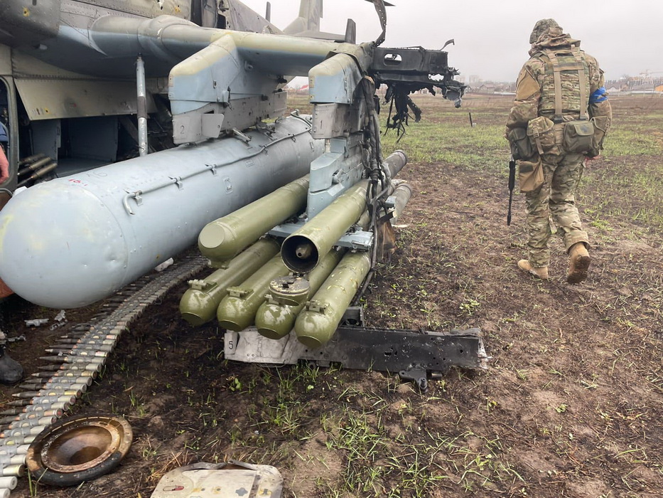 «Вояки Руху опору ССО оглядають російський вертоліт, збитий бійцями Сил оборони України. На одного півня рашистів стало менше! Працюємо!», - так назвали фотографії Захисники.