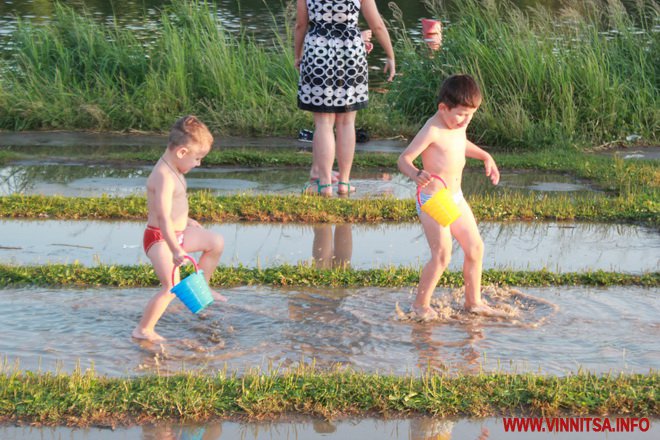 Яскравою подією стало захоплююче масове обливання з пожежного автомобіля. Радощам не було краю. Мокрі з ніг до голови вінничани дякували «вогнеборцям» за літній душ у спеку і хороший настрій. Під струменем води у повітрі утворилася веселка.