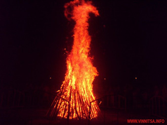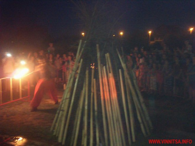 Коли стемніло, на галявині розпочалося вогняне шоу. Запалити купальське багаття випала честь самим фаєрам. І зробили вони це у своєму стилі. Палаючий подих – і гілочки вмить затріщали й запалахкотіли. Двометровий стовп полум’я здійнявся вгору.