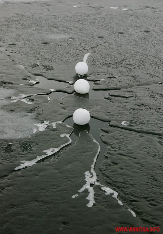 Объект "Зима Ч/Б" художницы из Полтавы, Харькова и Ровно (Людмила Яремчук, Виолетта Терлига и Виктория Телетьен) создали в Ровенской области. Художницы нашли место, где после пожара все было усыпано пеплом. Появление белоснежного шара стало пожеланием мира и светлого будущего.
